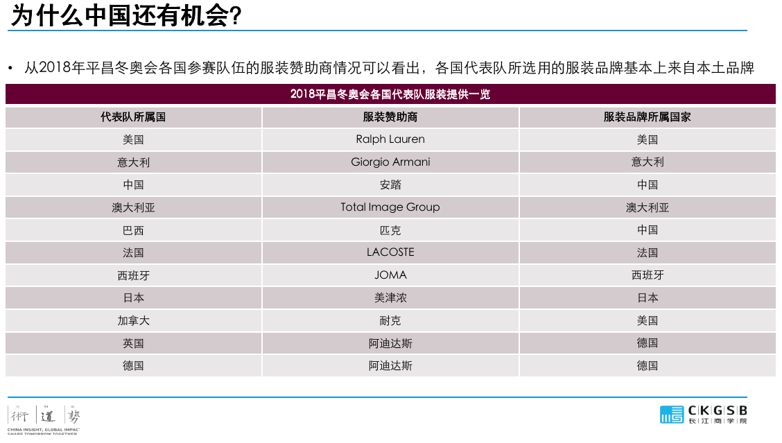所有的品牌都具有一定的文化效應,縱覽各國奧運會、冬奧會,使用的都是自己國家生產的體育品牌,出于國民對國家文化的自信,中國的體育品牌仍有發展空間。