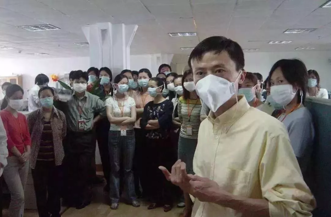 2003年5月5日,阿里巴巴一位幾天前參加了廣交會的女員工因高燒送醫,5月7日正式確診——她是杭州市那年4個中招的非典病人之一。馬云當即做了兩個決定:一是他和彭蕾到華星科技大廈其他公司道歉,并和防疫站積極溝通;二是公司立即全員(超過500人)隔離。
