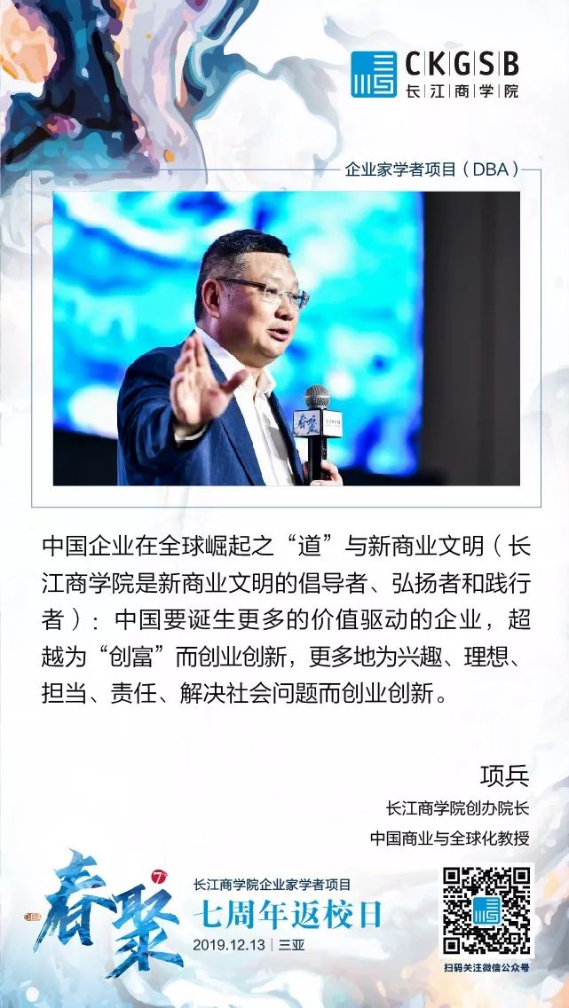 企業家學者項目七周年返校日,我們江湖同侶,團聚此刻,我們一起向真理致敬、向追求“新商業文明”的誠心致敬。在全球大變革的浪潮中,相信企業家學者項目的同學們將繼續秉持企業家精神,深刻洞察全球商業發展趨勢,探討行業前沿動向,遇見東西方文化的交融,不斷努力提升自我,為中國經濟的發展竭力貢獻!