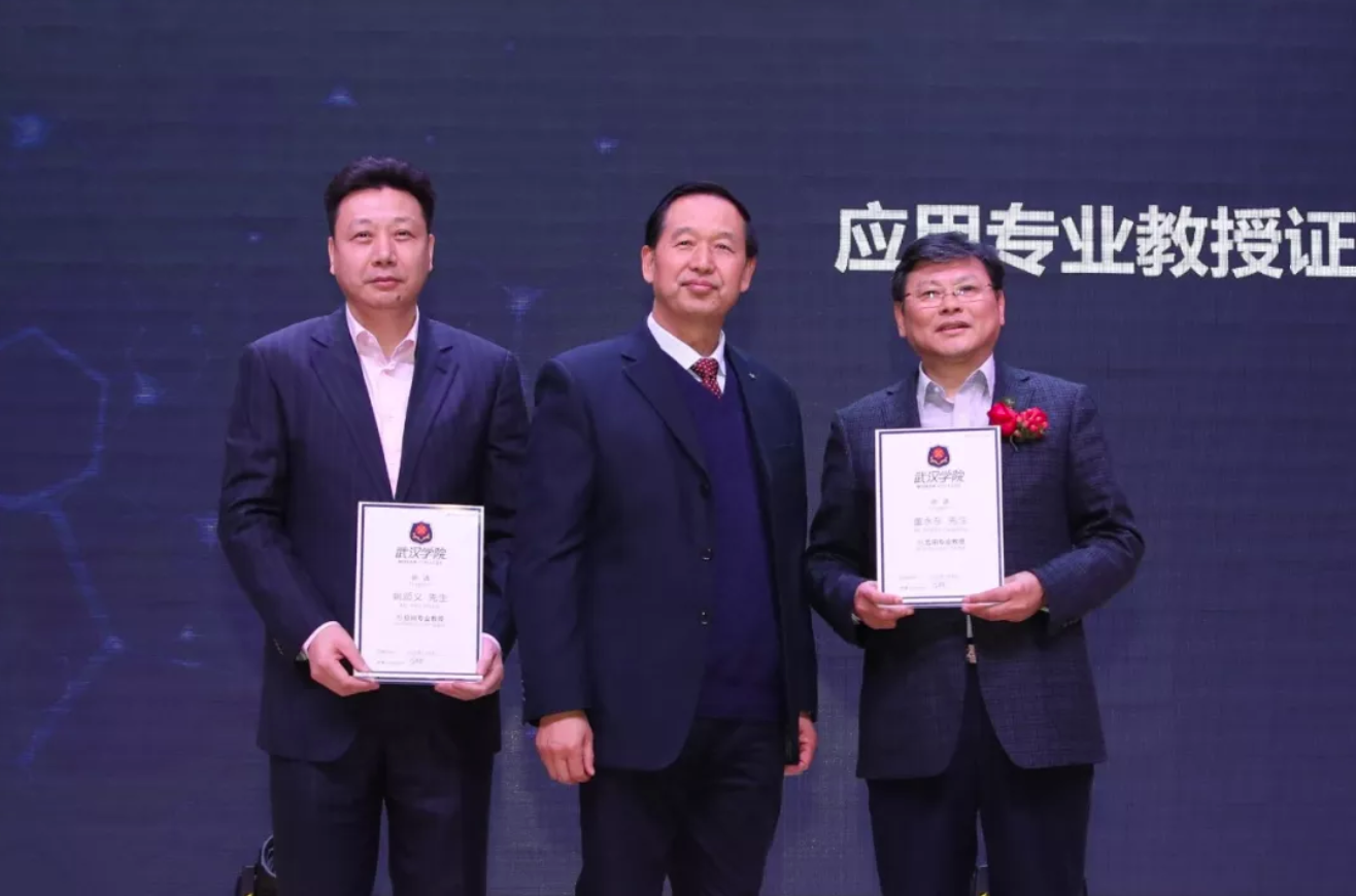 兩位企業家的分享讓學子對自身能力和環境認知有了更全面的理解,贏得全場熱烈的掌聲。同場,武漢學院校長李忠云為姚順義和董永東頒發了“應用專業教授”證書,深入推進校企合作,實現與學校的互利共贏。