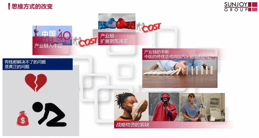 此次新冠疫情帶給我們新的啟示:必須在成本和風(fēng)險(xiǎn)之間尋找平衡,成本考量不是唯一的,各個國家都在考慮供應(yīng)鏈的獨(dú)立和制造業(yè)的獨(dú)立。