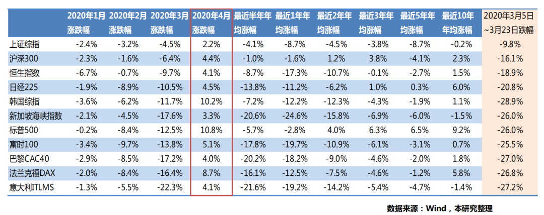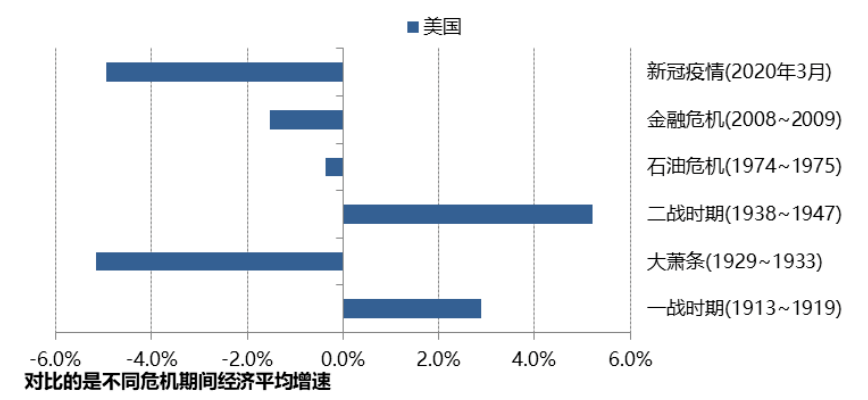 對比1900年以來重大負(fù)面事件,可以看到此次疫情對經(jīng)濟(jì)的嚴(yán)重打擊。以美國為例,由于新冠疫情美國第一季度經(jīng)濟(jì)下挫4.8%,而其歷史上1929-1933年大蕭條,4年平均GDP下挫也只有5%左右。而2008年金融危機(jī),美國經(jīng)濟(jì)下跌更是不足2%。