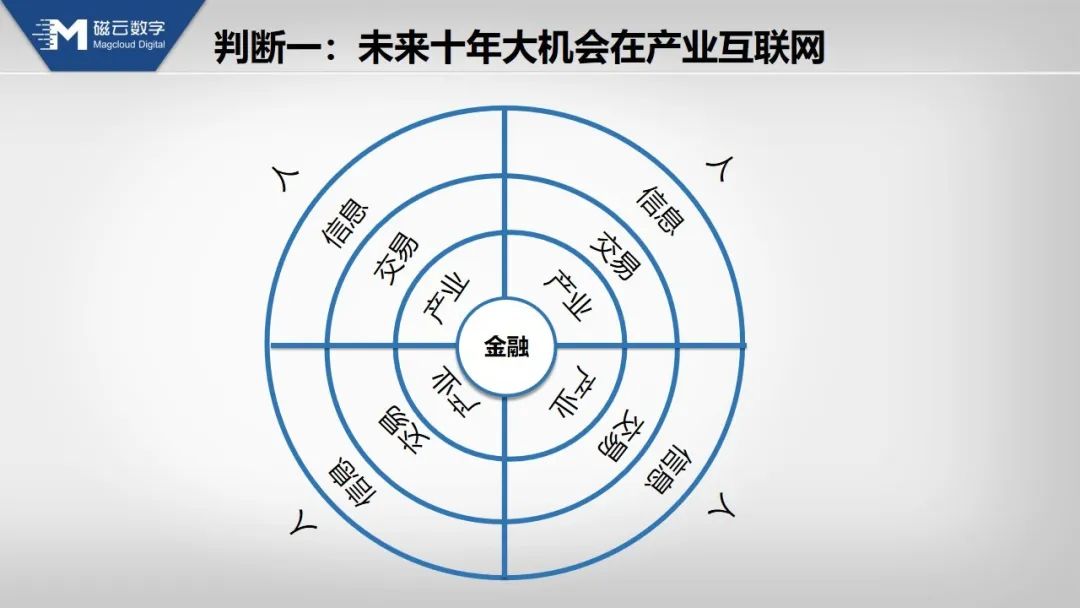 從95年涉獵互聯網,我們就把信息搬到互聯網上,誕生了新浪、網易、搜狐,以04年百度上市作為一個結束。這10年把信息傳播成本降到了零。05年到15年可以稱為電商十年,把商品搬上網,把交易搬上網,以14年阿里、京東上市為代表。到14年的時候,我就思考,15年到25年會是產業互聯網的十年。所以15年我離開京東,創辦磁云,開展了產業互聯網相關的工作。