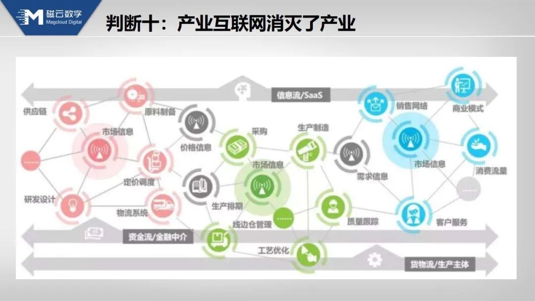 我認為產業互聯網會最終消滅產業。我們原來對一產、二產、三產的劃分是工業時代的一種劃分,但是現在大家會發現行業的邊界在變得模糊。而且我們一產、二產、三產現在都走向了融合,特別是有了互聯網手段,可能從田間地頭到餐桌,都通過互聯網方式可以完整的組織起來,所以很難再區分一產、二產、三產。