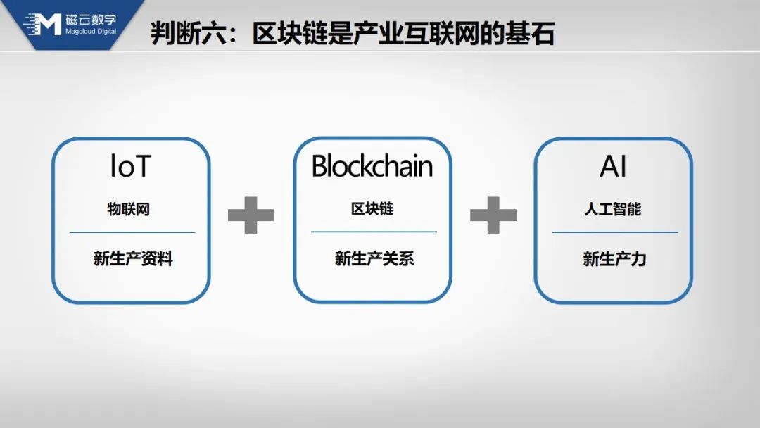 5、數字資產。特別是很多供應鏈資產,都可以把它數字化,比如說在供應鏈上的應收應付。如果我們能上鏈,讓它信用化,這個資產就變成了一個數字資產。可以拆分,可以流轉,還可以實現融資,它就具有這樣一些功能。我們很多資產如果通過上鏈把它信用化以后,它其實就可以碎片化。讓它具有流動性,提升資產效率。所以區塊鏈對我們產業互聯網來講應該是一個基石。