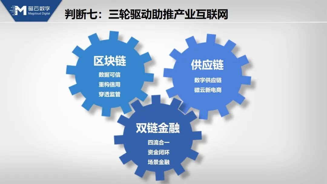 我認為三輪渠道,特別是區塊鏈+供應鏈,以及+雙鏈金融,這三個輪子會助推產業互聯網。剛才講的區塊鏈,核心就是三個價值,一是讓數據可信,基于這些可信數據,我們就可以把我們很多憑證,應收應付、票據資產變得可信。二是重構信用體系,讓良幣驅逐劣幣,而不是劣幣驅逐良幣。三是有利于監管,有利于治理,這是建立傳統式監管和治理體系的有力工具,所以區塊鏈很重要。