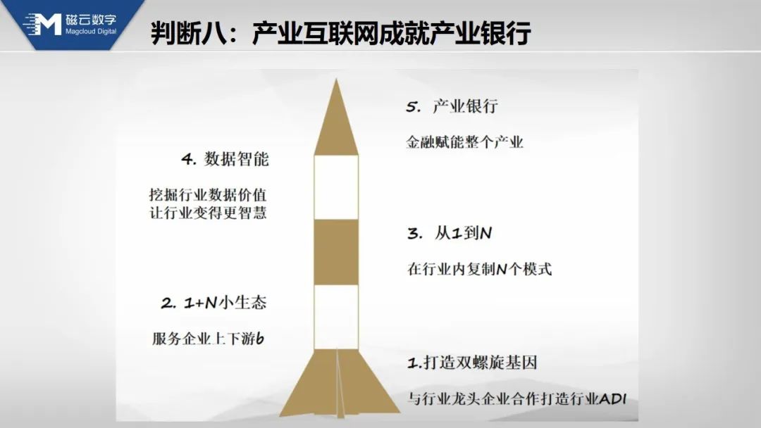 第五步,基于大數據,我們有可能把產業銀行這個邏輯做出來。就是通過大數據和科技手段來創新我們的金融產品,讓金融產品更好的服務實體產業,也就是實現金融的脫虛向實。