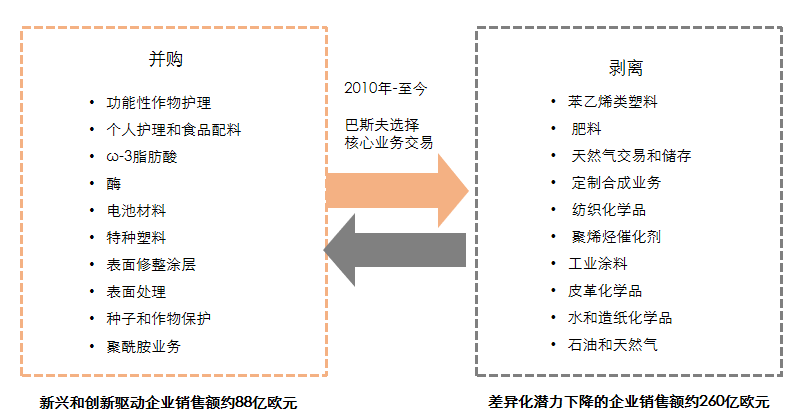 以巴斯夫為例,在過去的10年間,該企業做了大量的并購和分拆
