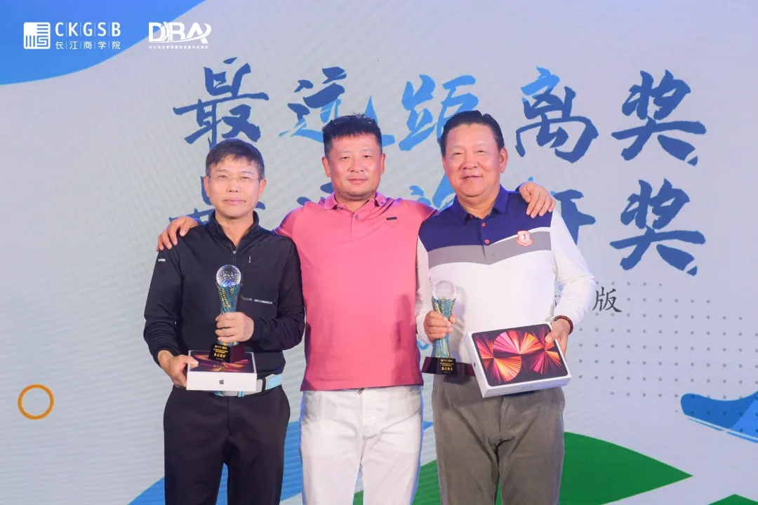 頒獎典禮環節,閻愛民教授及DBA項目主任曹熠老師、DBA高球隊隊長宋德安、DBA高球隊華東隊長金闖、DBA高球隊華北隊長馬寶山、DBA高球隊華南隊長蔡曉東及DBA高球隊西南隊長馮柳江分別作為頒獎嘉賓為獲獎人員隆重頒獎。