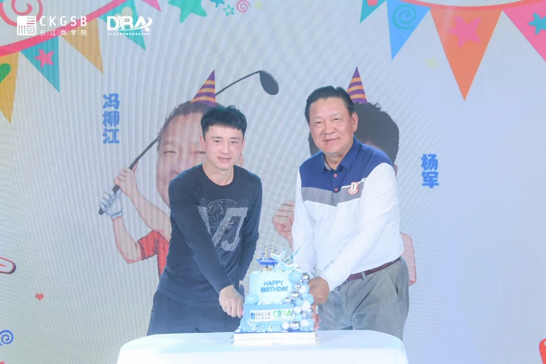 頒獎晚宴正值DBA高球隊西南隊長馮柳江、DBA八期班楊軍兩位同學生日,現場教授、老師及同學們為兩位同學獻上生日祝福,溫情滿滿。