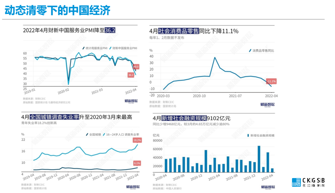 在動態清零政策下,當下中國依舊面臨經濟下行壓力。李海濤教授表示,相較經濟增速而言,穩就業最為重要,中國目前面臨的最大挑戰是經濟挑戰: