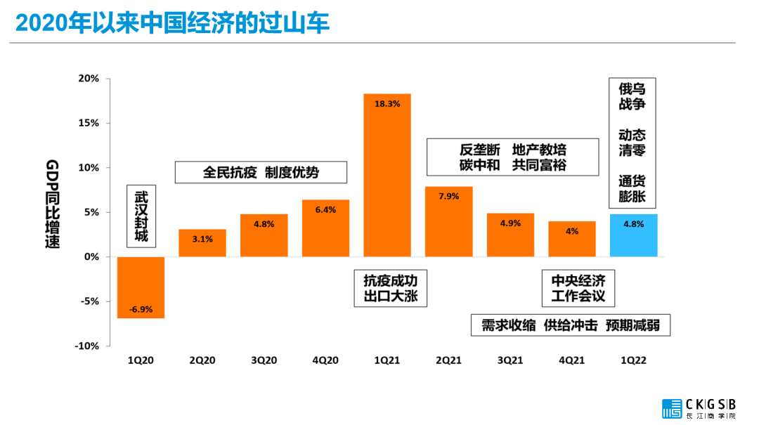 面對世界經濟局勢的變化,企業家們如何理解當下的中國和世界?李海濤教授首先從歷史角度闡述了2020年以來中國經濟形勢的變化。