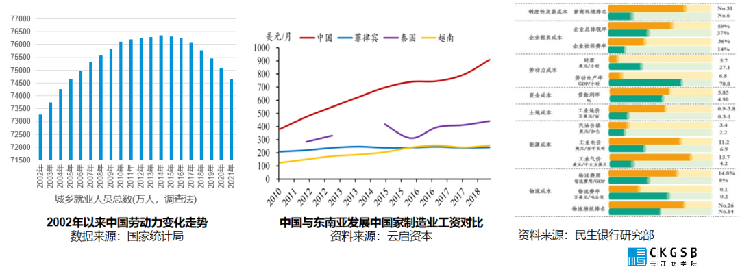 制造業(yè)所面臨的的挑戰(zhàn)則表現(xiàn)在內(nèi)外兩方面:對(duì)內(nèi),勞動(dòng)力及其他生產(chǎn)要素成本的上升造成了中國(guó)制造業(yè)原有優(yōu)勢(shì)的減退;對(duì)外,中美關(guān)系、俄烏沖突、新冠疫情、環(huán)境惡化等問(wèn)題給中國(guó)制造業(yè)的發(fā)展增加了額外成本,帶來(lái)了巨大的不確定性。