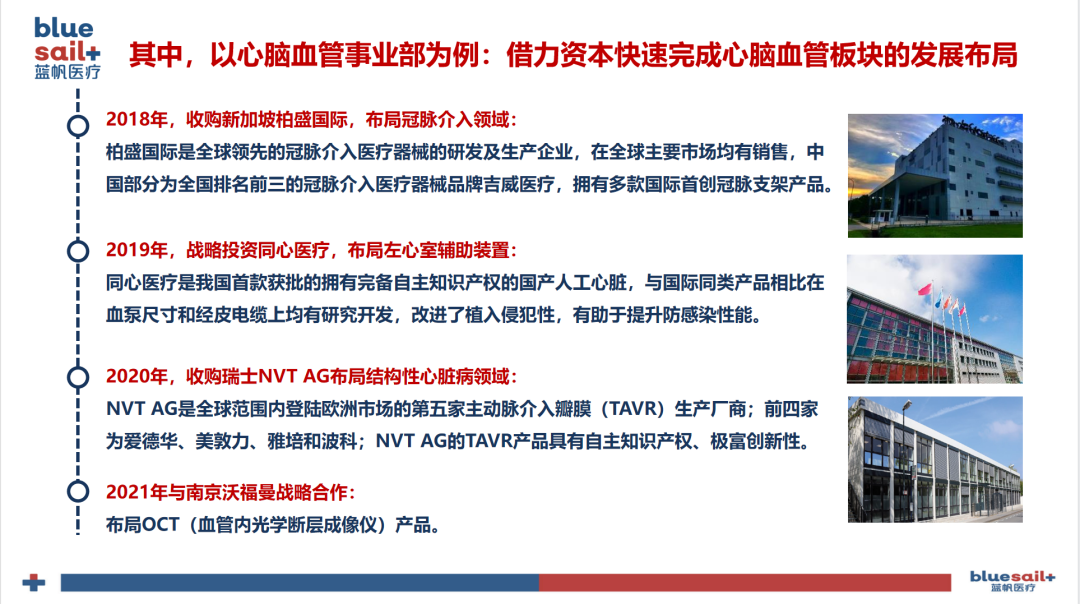 2013年至今,通過(guò)跨國(guó)并購(gòu)、可轉(zhuǎn)債、并購(gòu)基金、產(chǎn)業(yè)基金、上市公司直投等多種資本賦能方式,藍(lán)帆相繼進(jìn)入冠脈、心衰、結(jié)構(gòu)性心臟病、醫(yī)療急救護(hù)理、微創(chuàng)外科等一眾朝陽(yáng)細(xì)分領(lǐng)域,推動(dòng)產(chǎn)業(yè)邁上中高端,實(shí)現(xiàn)企業(yè)轉(zhuǎn)型升級(jí)。