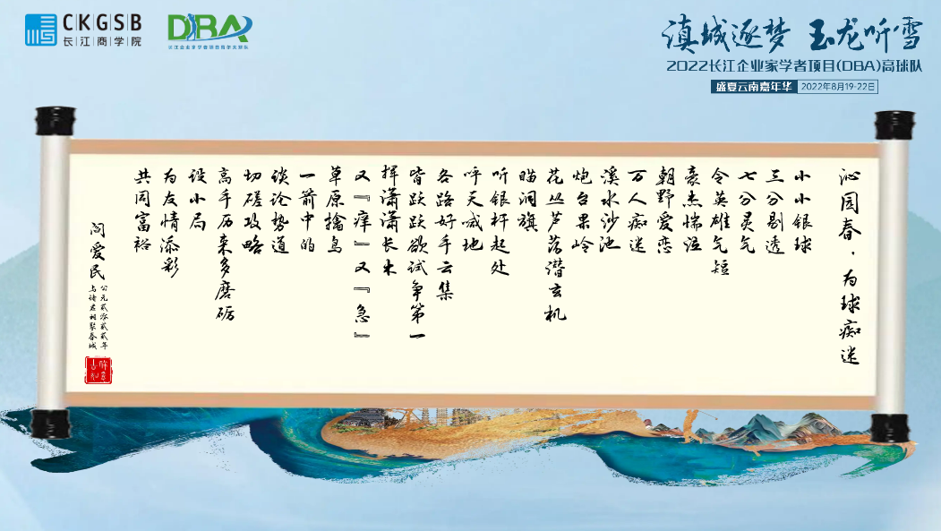 滇城逐夢,玉龍聽雪。22日,在同學們的不舍之中,“2022長江DBA高球隊盛夏云南嘉年華”活動圓滿落幕。在本次賽事中,DBA球員們不僅精進了球藝、創下佳績,也收獲了深刻的友誼和商業新思。讀書·行路,期待下一次的DBA高球盛事,與所有的精彩不期而遇。