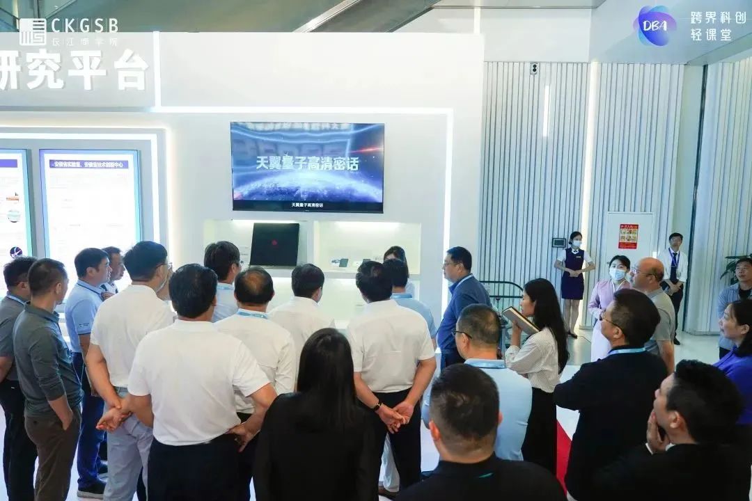 6月20日的上午,在長江商學院「DBA 跨界科創輕課堂」上,安徽創新館負責人也向DBA的同學們展示了這部先進的量子“電話”,電話接通后,手機頁面上會顯示“量子密話中”。