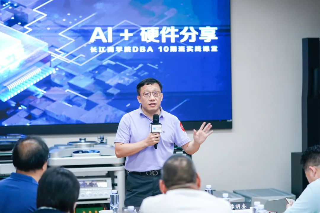 近日的長江DBA課程中,DBA十期班同學、視源股份董事黃正聰及高管團隊向同學們分享了視源視角的AI+硬件探索歷程,DBA十期班同學、三七互娛聯合創始人胡宇航分享了AI+軟件前沿應用實踐。