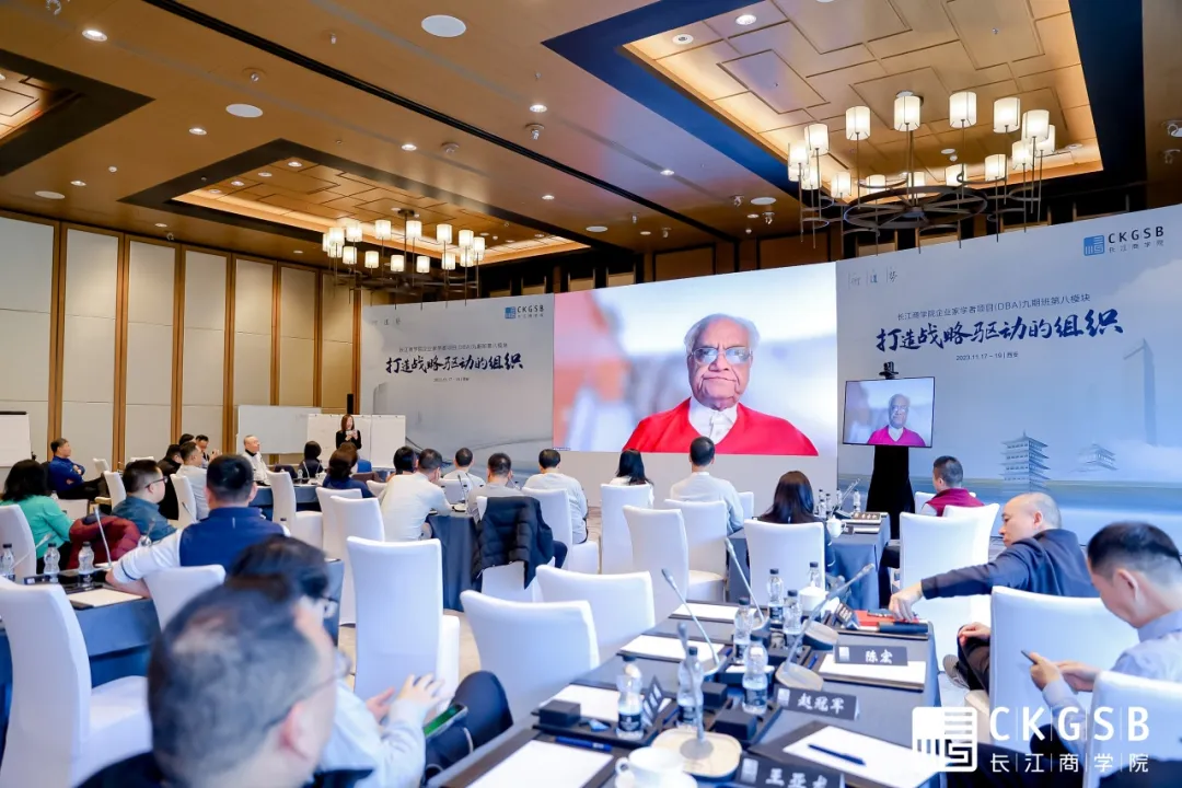 在此次模塊課程中,長江商學院戰略與創新創業實踐教授、哈佛商學院高級研究員、京東集團資深顧問廖建文教授以身經百戰的戰略規劃和研究經驗,為DBA同學們講授了“打造戰略驅動的組織”這一課題,并深入分享了多個企業案例;企業家顧問、全球著名實戰型管理大師拉姆·查蘭則以“公司治理與企業傳承”為主題,與其全球合伙人楊懿梅全程連線完成精彩授課。