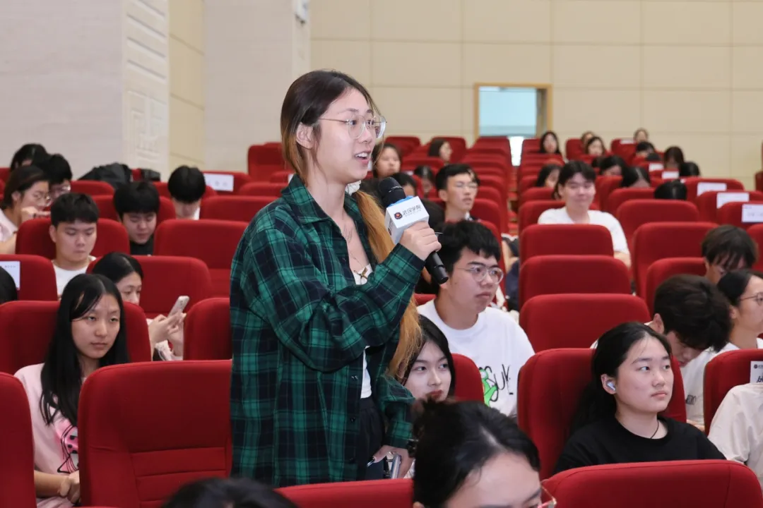 趙旭隆和王鶯妹兩位嘉賓的精彩分享,引得現場掌聲雷動。他們與武漢學院的同學們積極互動,分別就“如何培養(yǎng)創(chuàng)新思維”、“女性領導的風格與視角對企業(yè)有哪些特別貢獻”等問題展開熱烈探討。
