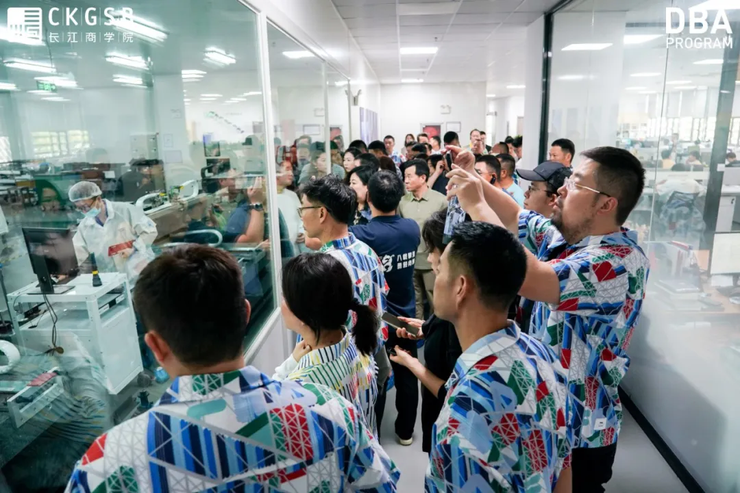 在下午的實踐課堂里,同學們走進了芯碁微裝展廳和工廠。芯碁微電子裝備股份有限公司董事長、DBA十一班同學程卓,長江商學院院長、金融學杰出院長講席教授李海濤,從經濟、地緣政治、商業的角度對全球大變局下的芯片產業進行全景式分析。