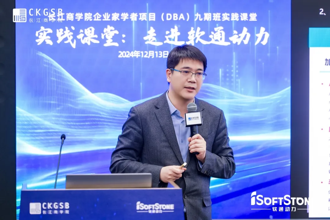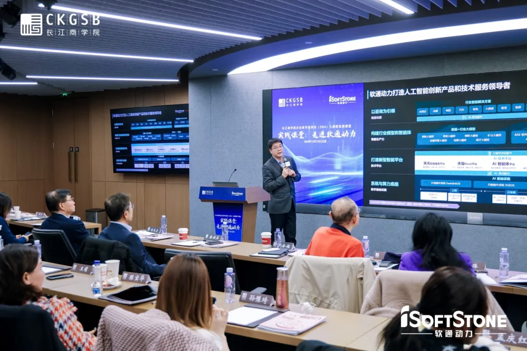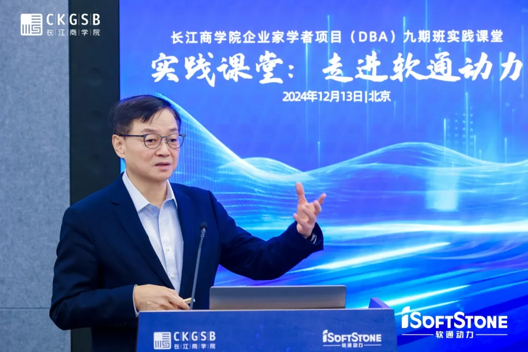 12月13日,長江DBA九期班同學們走進軟通動力信息技術(集團)股份有限公司(以下簡稱軟通動力),在DBA九期班同學、軟通動力董事兼首席運營官車俊河的帶領下參觀了展廳,并聆聽了DBA八期班同學、軟通動力董事長兼CEO劉天文和CTO劉會福的深度分享,探尋軟通動力在AI時代如何順“勢”而為,開創企業轉型發展之路。