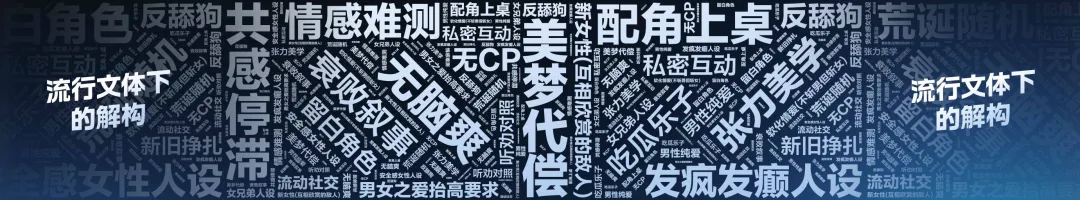 在流行文體的解構(gòu)方面,我們的創(chuàng)作者天天研究這些詞,這些詞都是大眾在互聯(lián)網(wǎng)空間給創(chuàng)作者提出的要求,它彌漫在網(wǎng)文、動畫、綜藝、電影、電視劇所有的評論空間當(dāng)中。