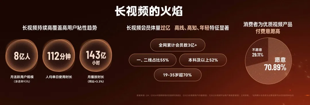 大多數(shù)行業(yè)在未來兩三年,都可能是從增量性發(fā)展轉(zhuǎn)化為內(nèi)涵性發(fā)展。如果我們真正能夠把長視頻的故事加以升格、加以審美、加以升維,去滿足高線、高知、年輕用戶的需求,滿足平臺過億會員的需求,滿足高付費意愿人群的需求,我相信這個行業(yè)依然會在內(nèi)涵式收益上有一個高增長的獲得。用戶會拿錢、拿自己的意愿、拿自己為精神夢想的溢價去支持長視頻行業(yè)。