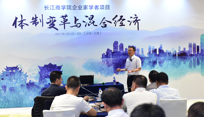 長(zhǎng)江企業(yè)家學(xué)者項(xiàng)目實(shí)踐課堂走進(jìn)云南白藥,企業(yè)家學(xué)者項(xiàng)目教授及研究團(tuán)隊(duì)為本次課程定制混合所有制改革專題研究,劉勁教授指出,混合所有制改革是今后五年經(jīng)濟(jì)發(fā)展的勝負(fù)手。云南白藥總經(jīng)理王明輝與同學(xué)們探討云南白藥混改的前世今生。