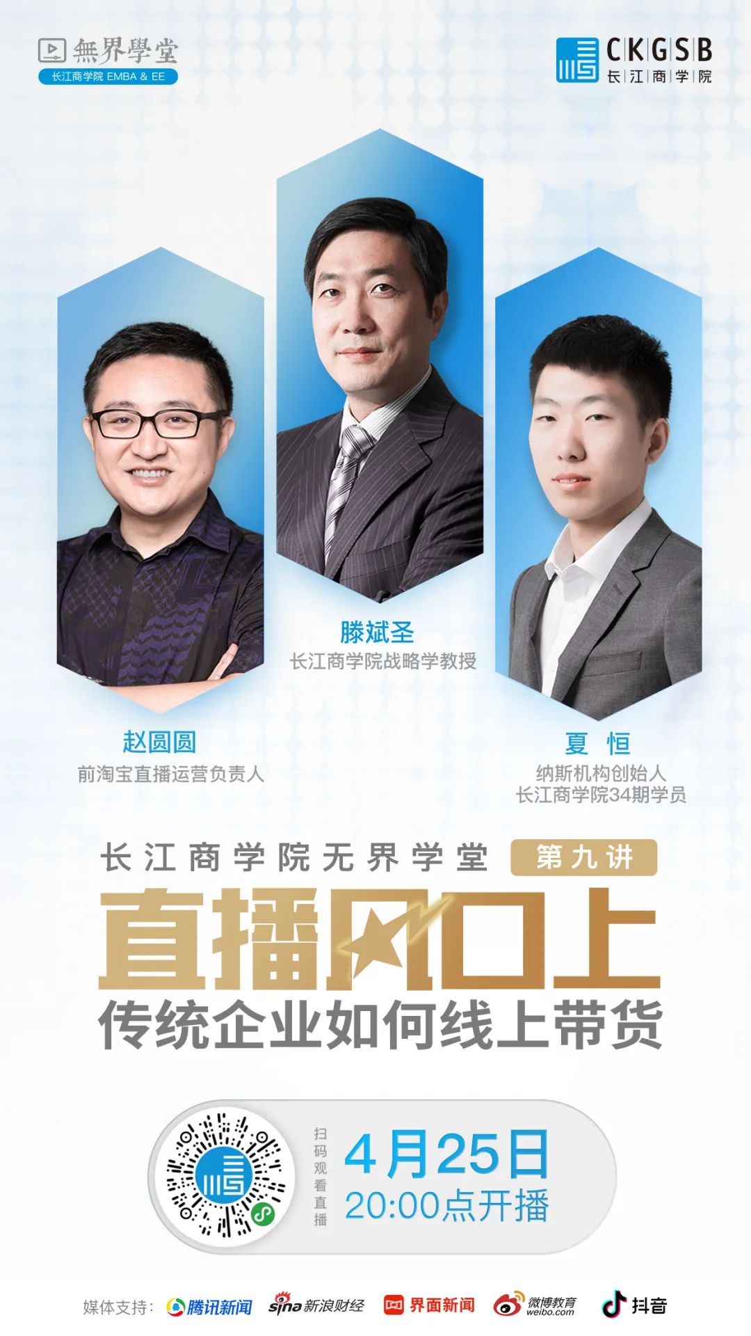 【长江商学院无界学堂】为在线直播课程,由长江EMBA和EE项目联合推出,旨在帮助更多企业家应对挑战,找到增长机遇。