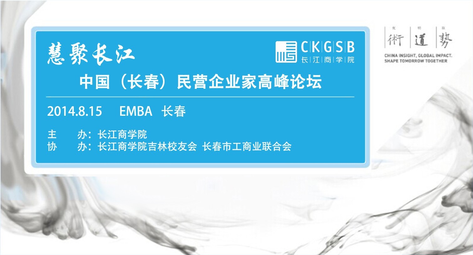 8月15日,长江商学院携手长春市工商业联合会诚邀您与长江商学院副院长、金融学教授梅建平博士及长春最具影响力企业家和长江EMBA校友,就长春经济发展建言献策,为当地企业面临的融资难、产业升级与如何切实提升企业家管理能力等实际问题开具良方;共同展望国内外经济发展的最新态势,解读中国经济面临的危局与机会,寻找走出经济改革困局的创新突破口。