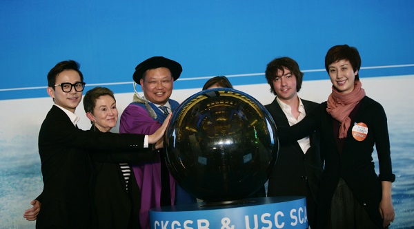 在“长江商学院2014年毕业-开学典礼”上,长江商学院创办院长项兵博士和南加州大学电影艺术学院院长伊丽莎白•戴利教授(Elizabeth Daley),以及国际野生救援协会中国首席代表子雯(长江EMBA2014秋季班公益奖学金获得者)、R2Games首席执行官贾瑞德、国家一级京剧演员史依弘以及知名主持人何炅四位长江文创EMBA首期班学员共同参与了启动仪式。