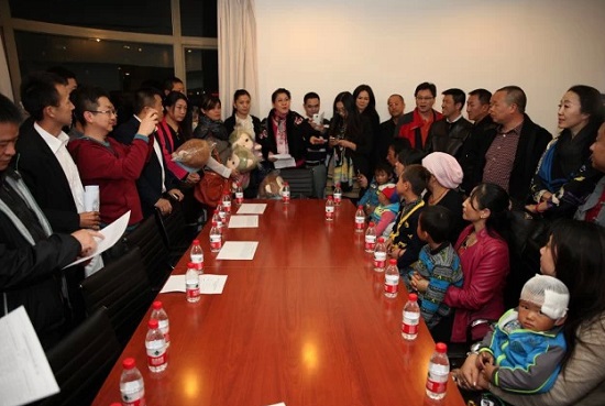 住院部小小的会议室,因为几十名到访者的出现瞬间拥挤不堪,为了怕打扰到病人,同学们安静地鱼贯而入,眼中藏不住的是对孩子们关切的疼爱眼神。男孩们坐在各自家长的怀中,黑里透红的小脸显得有些羞怯。9岁的祁增龙的父亲作为家长代表发言,这位善良质朴的农民一直在纠结于没能给三班的全体师生做一面锦旗,“我的孩子已经成功完成了手术,他的这个病……我们家里很困难,真的诚心感谢大家……今后他们的血管里流着你们的血,我们不会忘记你们……我们一定会教育他们好好学习,将来好好报答你们……我没找到做锦旗的地方……”语不成句却字字真诚,说完这些话,这位父亲眼含热泪向三班的全体师生鞠了一躬。