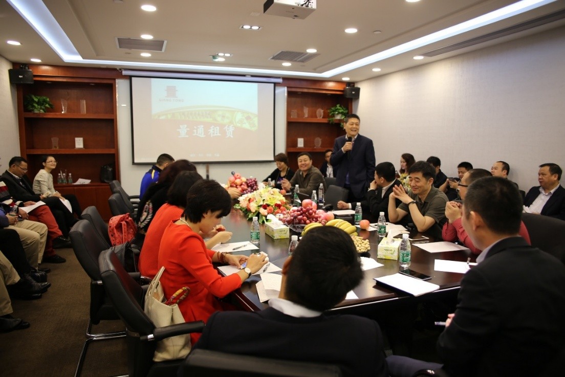 学习的第一站是量通租赁,董事长穆毅同学向班主任陈静老师,招生部常春雷老师及各位同学的到来表达了诚挚的欢迎,随后系统而全面地介绍量通的整体情况,内容涵盖量通的发展历程、各种创新业务模式以及历年来所取得的丰硕发展成果,同学们纷纷惊叹于量通发展壮大的规模及速度。随后同学们与穆毅及各位公司高管进行了深入的对话与探讨,希望未来可以开展业务合作,实现优势资源整合。