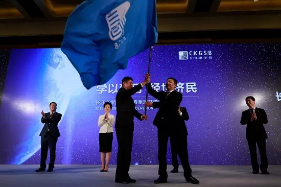 开学典礼上,EMBA23期1班班长、三亚弘盛元投资发展有限公司董事长张日红,24期2班班张长、北京中卫康医药投资有限公司副董事长张宏,25期3班班长、北京世丰国际置业有限公司董事长刘金钊同学代表发言,EMBA26期新生代表广州银汉科技有限公司首席执行官刘泳、量通租赁有限公司总经理刘青松及FMBA2015级新生鼎瑞资本执行董事、总裁孙升奎致入学感言,三位学姐、学长为新生代表佩戴校徽,并把长江之旗交到新生手中,完成长江意志与精神的传承。