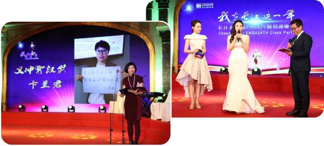 在华光异彩的大厅,由长江EMBA24期同学、著名主持人孟盛楠与周群领衔的主持团队,由各班同学精心策划的精彩节目,由获得中国戏曲金奖的同学家属友情出演,让此台晚会堪比专业水准,亮点连连: