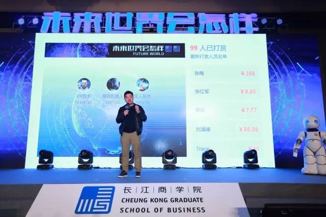 为了提升每位来宾的参与度,现场班委们还设置了打赏互动环节,每位来宾都可为自己喜爱和偏好的未来科技应用技术打赏,大大提升了嘉宾演讲的积极性和来宾作为评委的荣誉感、融入感。