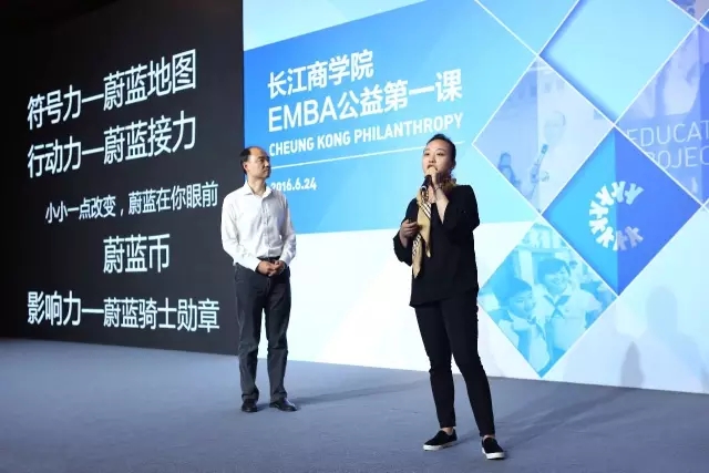 鸿基金“爱的背包”项目发起人,长江EMBA13期陈伟鸿诉说了了几年前云南大旱时他所见的孩子眼中特殊的渴望之光——对水的渴望,对父母亲情的渴望;野生救援中国区代表、长江EMBA25期子雯阐述了“GOblue向蓝长江公益活动”,和没有买卖就没有杀害的观念,鼓励大家通过改变消费习惯来真正保护动物,来保护环境和延缓气候变化;东申童画“行走的力量”代表、长江EMBA28期陈坤则分享了他个人对于外在财富与内在快乐关系的真实感受,并提出了通过行走获得内心纯净快乐和完满智慧的理念。
