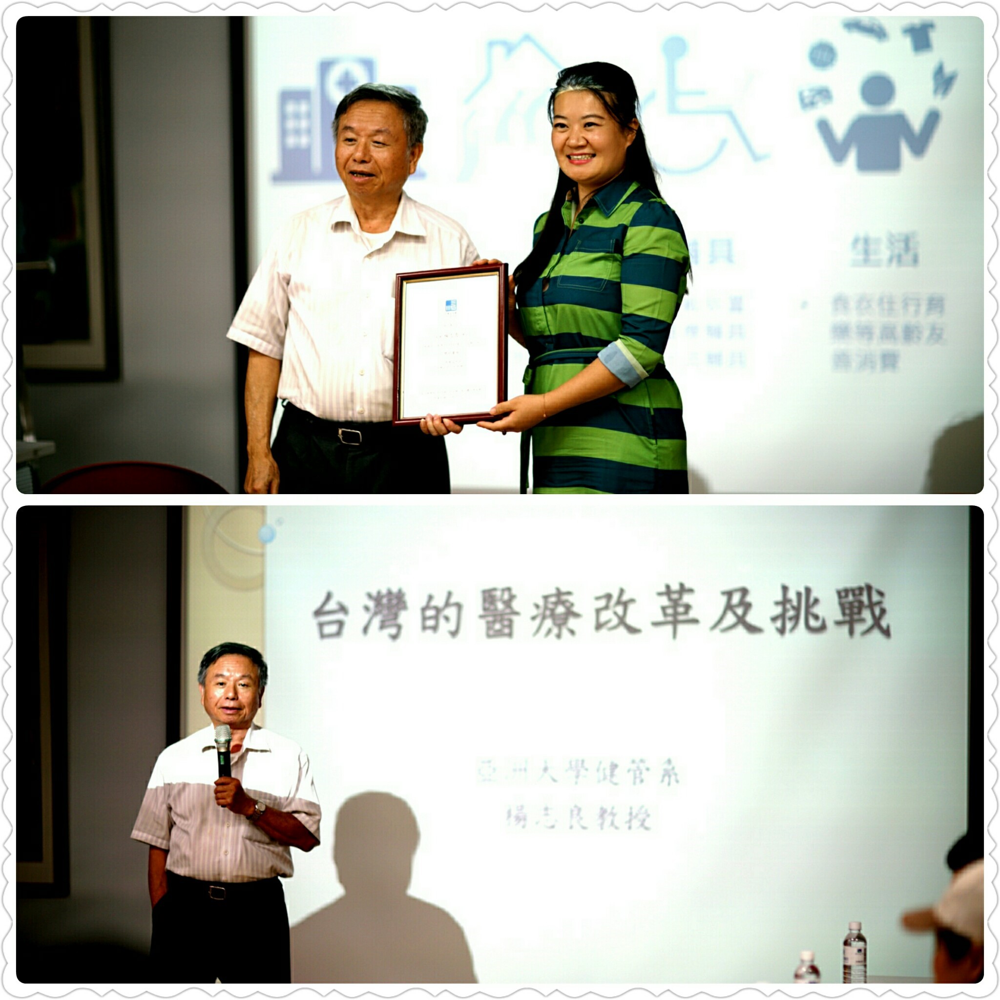 当日下午,班级在台北北投健康管理医院举行了特别讲座:台湾大健康产业分享。讲者是前卫生署长杨志良教授、台湾健康保险局秘书长王炳龙博士。