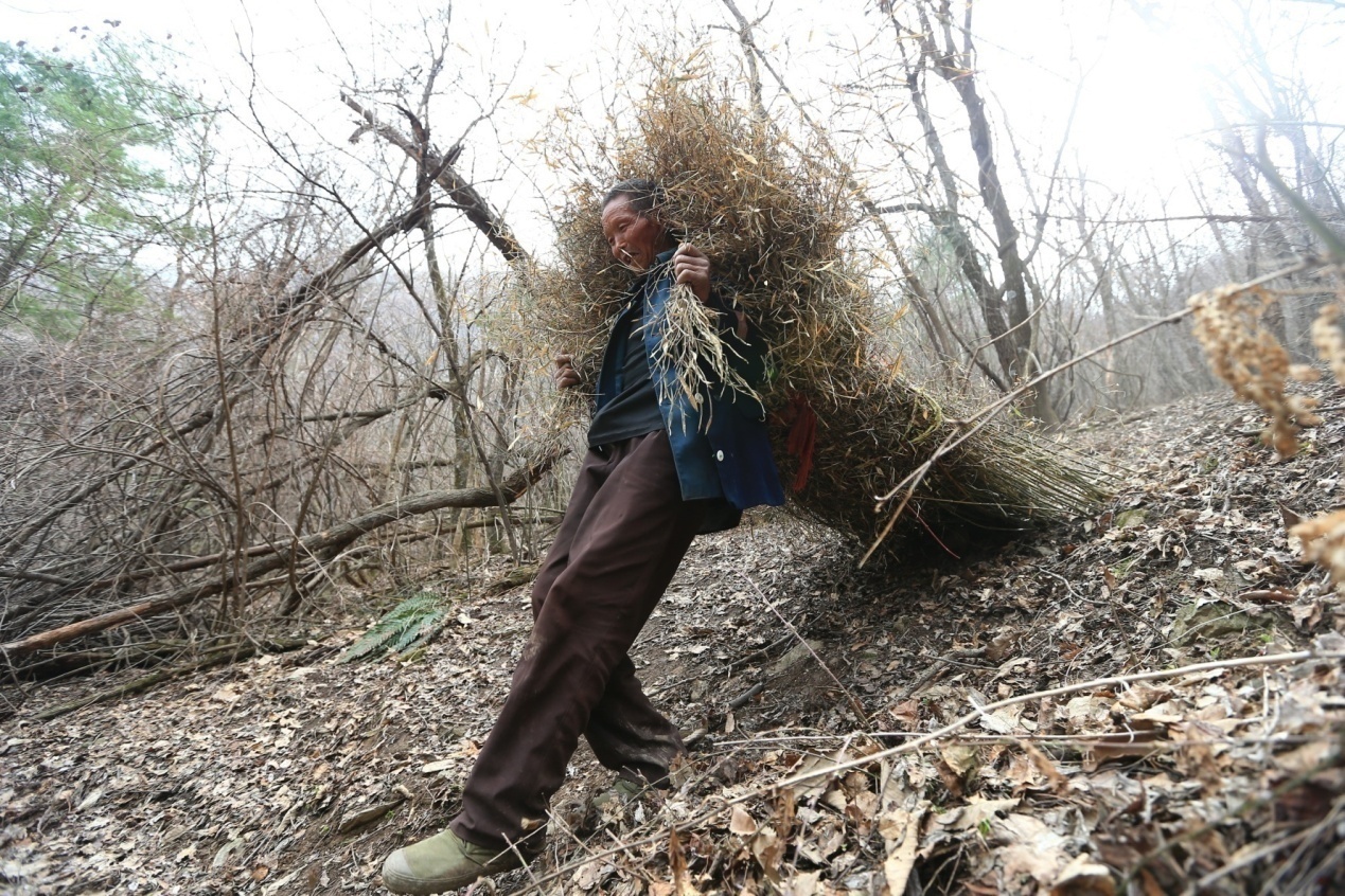 后来他才了解到,这位老人唯一的生活来源,是每天上山割毛竹,然后编成扫帚卖给城里的环卫工人。他每天要爬上海拔2000多米的山腰,然后背着百十斤的毛竹下山,往返几十公里。