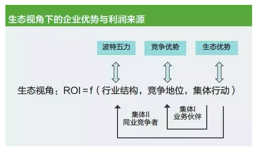 生态圈的价值在于:第一,为企业提供了在传统的行业结构、竞争地位之外的价值来源;第二,有利于行业结构的优化、核心竞争力的建立,也就是巩固传统的价值来源。最终,这为企业带来更高的投资回报率。