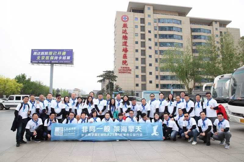 4月底,长江商学院EMBA29期1班50位同学课前提前一天到达北京,走进河北燕达陆道培医院开展了“爱心公益,你我同行”无偿献血和捐增爱心电子图书活动,为血液病患者送去温暖。陆道培医院陆佩华副院长代表院方一同陪同参加了此次活动,并为我们介绍了陆道培医院近年来在血液病领域的研发的成绩,已经引起社会很多慈善机构的捐助,期待有更多的人关注这些孩子。