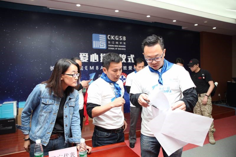 长江商学院EMBA29期1班的同学们以实际行动托起生命的绿舟,诠释爱心的意义,最后每组同学代表发言表达了通过我们的践行公益的行动,更加关爱社会需要关注的孩子,更加坚定地践行公益的长江理念,《益不容辞 · 笃行致远》。