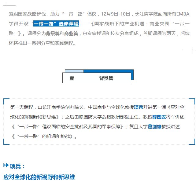 新课播报 | 长江商学院EMBA“一带一路”选修课程