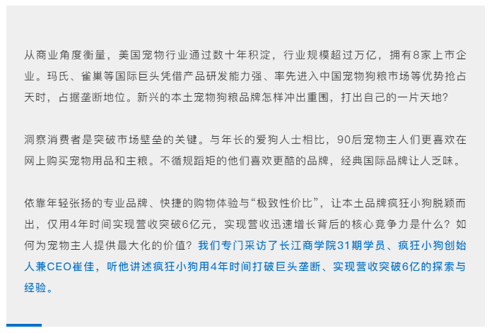 31期崔佳:明道者打破常规 突围巨头垄断 攻占狗粮市场