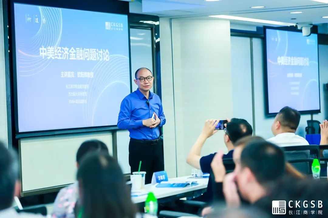 长江商学院金融学教授、杰出院长讲席教授、EMBA项目副院长欧阳辉博士,以“中美经济金融问题讨论”为题发表主旨演讲。