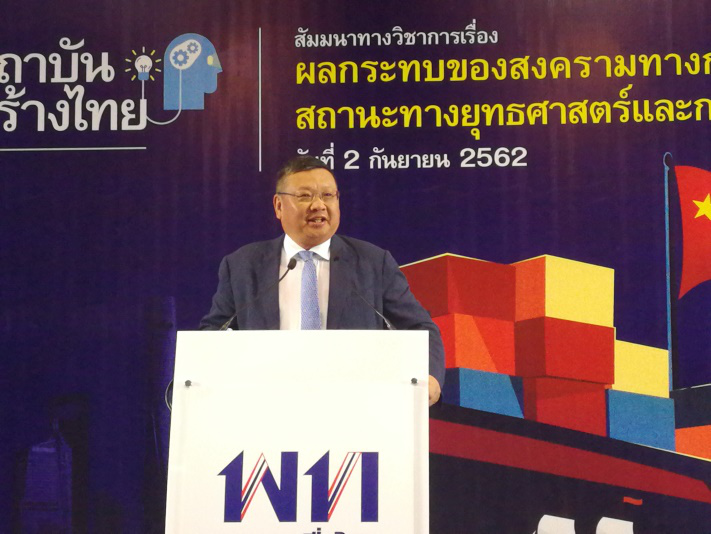 之后举行的题为“中美贸易战的影响:泰国的战略定位及应对”的研讨对话环节,为泰党副党魁、前副总理兼财政部长吉迪拉·纳·拉农(Kittiratt Na Ranong);泰国央行前副行长班迪德·尼加萨温(Bandid Nijathaworn);前廊实大学经济学院院长阿努颂•坦哉副教授等参与座谈。此次论坛在为泰党总部OAI大厦举办。