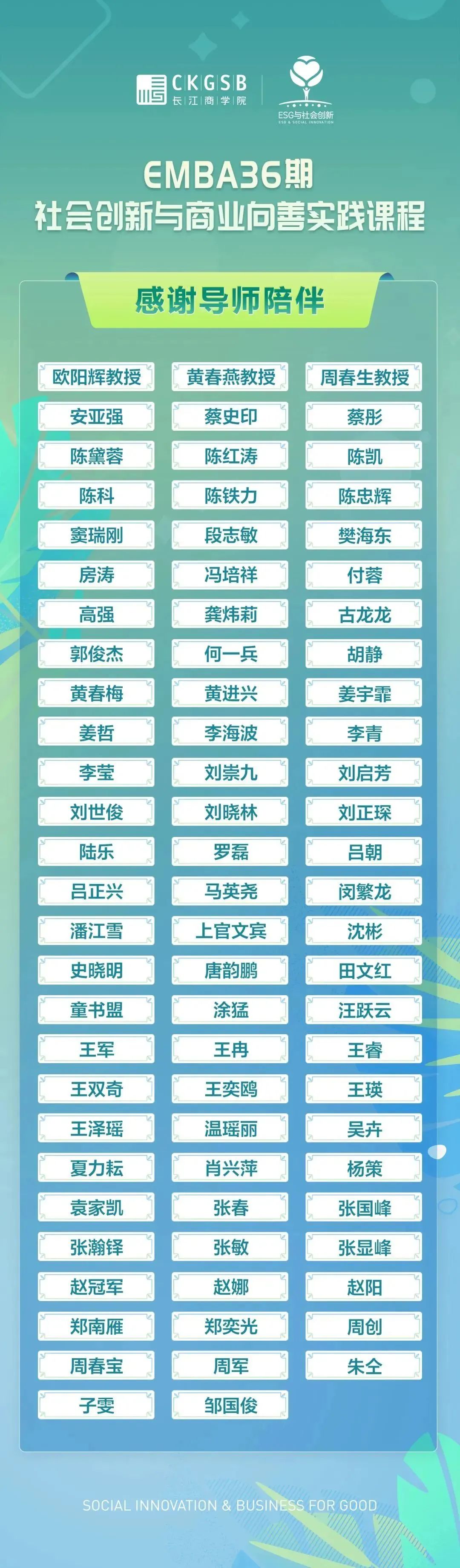 自2021年2月长江商学院EMBA第36期“社会创新与商业向善实践课程”启动以来,通过教授、同学和导师们的不懈努力,EMBA36期同学为期一年的实践项目积累下了534个珍贵的社会创新与商业向善实践案例。