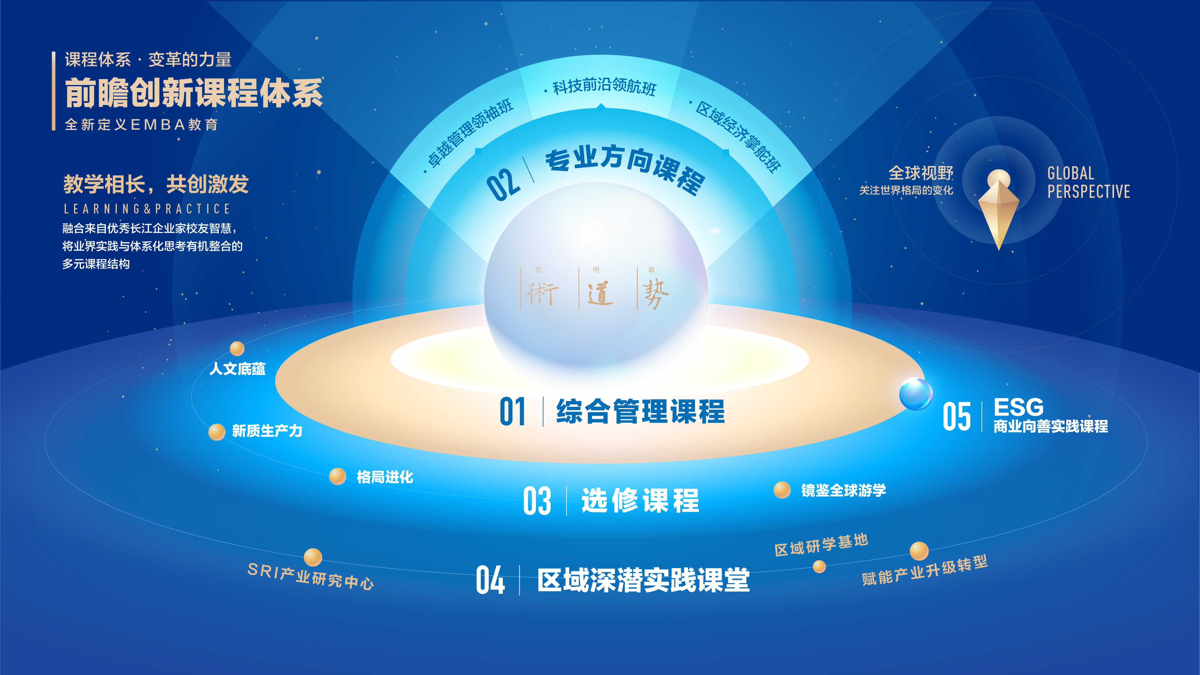 长江EMBA课程注重夯实企业核心管理能力的基础上,构建宏观视野与全球格局,并最终回归商业的本质。透视未来商业前沿,推动商业实践的发展进步。在这个整体框架下,我们会根据环境的变化、科技的发展、社会的进步以及商业范式的演进不断迭代具体的课程内容。