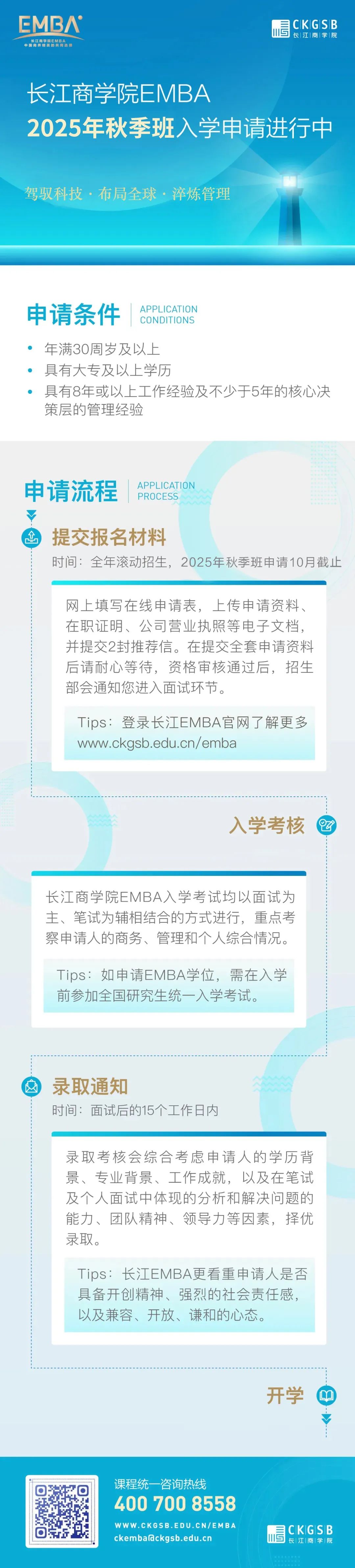 长江商学院EMBA课程|2025秋季班入学申请最全攻略