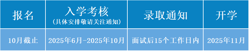 长江EMBA每年设两期,春季班5月开学,秋季班11月开学。采用全年滚动招生,除开学月外基本每月均设有面试,春季班申请截止到4月,秋季班申请截止到10月。